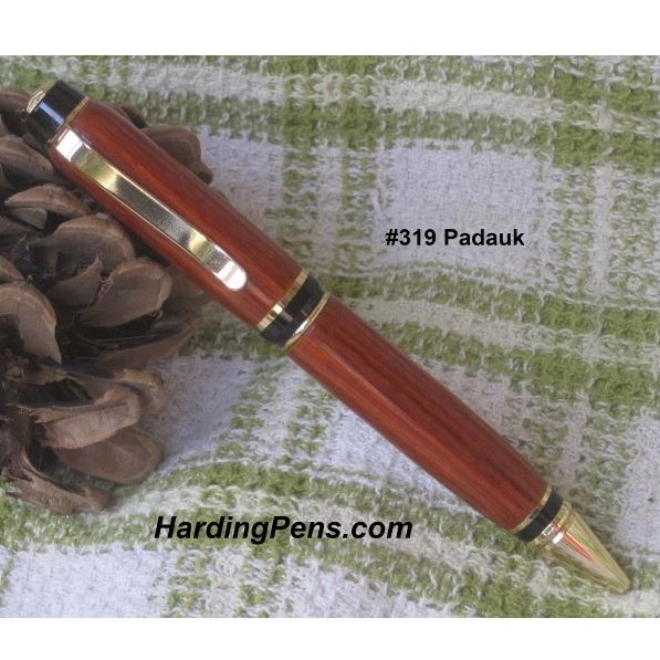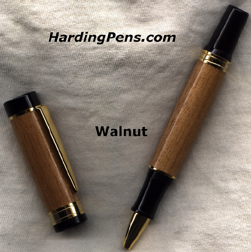 The Sierra pen retracts the ink with a twist. Available with several hardware plating options. This pen has one larger center wood section that can really show off the wood. The Sierra pen uses a Parker type ink refill.