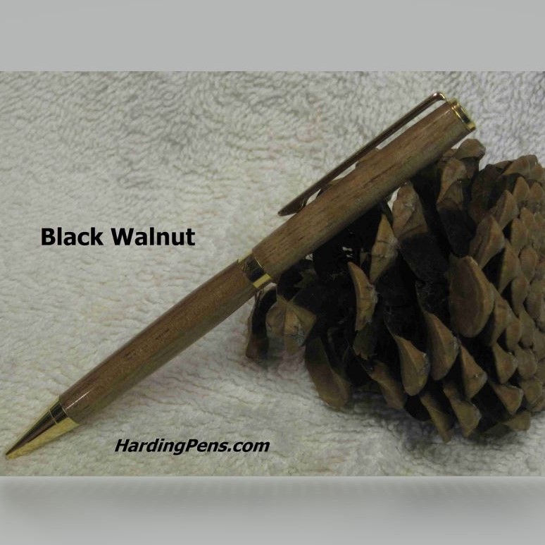 The European twist pen is styled in a classic European pen look and uses a Cross type ink refill. Available with several hardware plating options. I also make versions where the metal final is replaced with a wood cap.